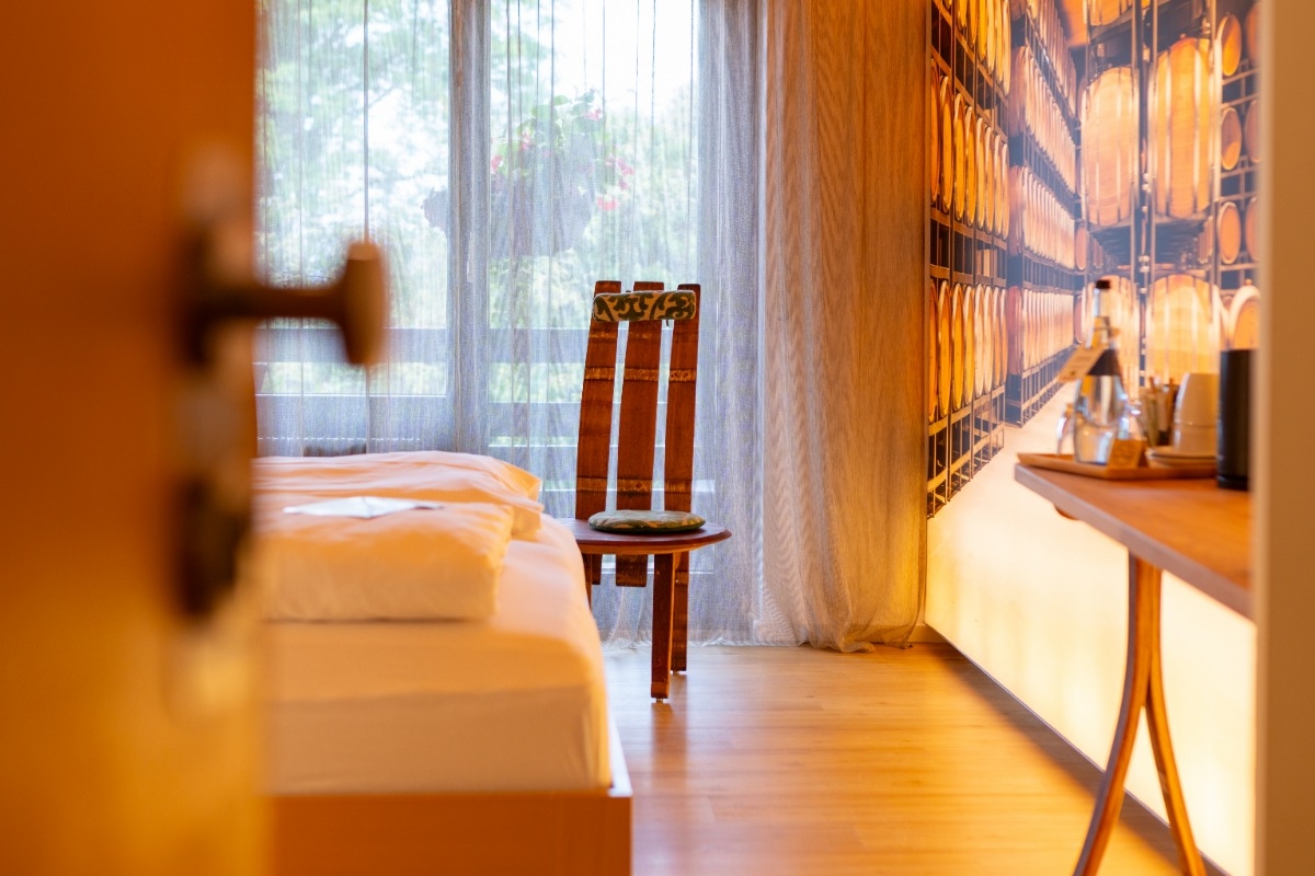 • Vinarius Schinken (21 Monate) – im Barrique-Fass mit Rotwein gepökelt, luftgetrocknet