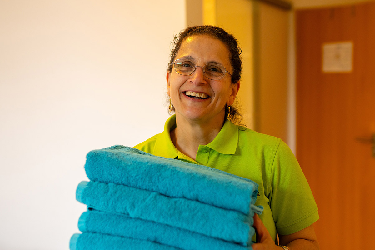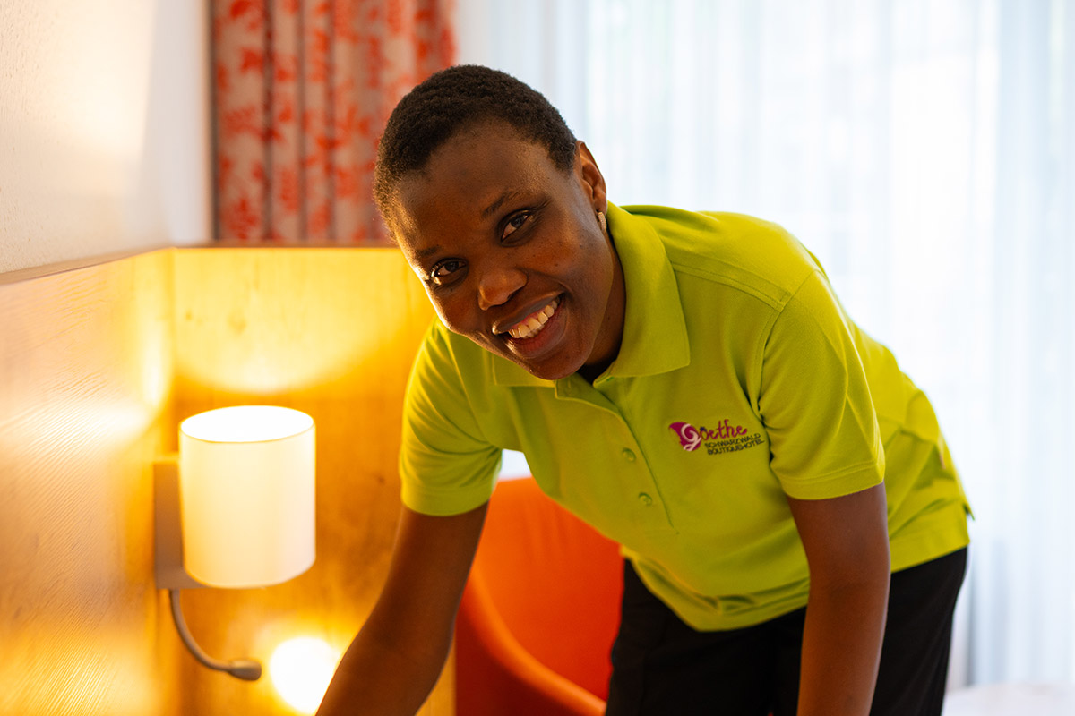 Sie bringt die Zimmer zum Glänzen und unterstützt mittags im Service. Zuverlässig, ruhig und lernbegierig – eine echte Stütze im Team.